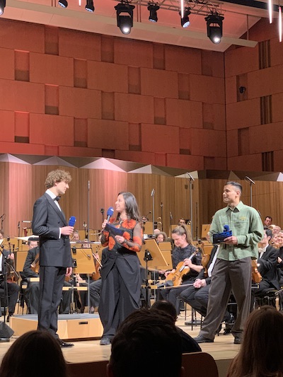So blieben nur drei der diesjährigen Kandidatinnen und Kandidaten. Aus China zu uns gekommen ist der Tenor Xiao Zheng, er hat, wie alle anderen auch, an der HMTMH studiert. Er interpretierte ein Stück des Spaniers Sorozàbal und begeisterte das Publikum zum Ende des Programms mit der Schlussszene aus Parsifal. Den instrumentalen Part übernahmen dabei die beiden Pianisten Cécile Sagnier und Leonard Halm, sie spielten vierhändig die Bearbeitung des Schlusses von Engelbert Humperdinck.